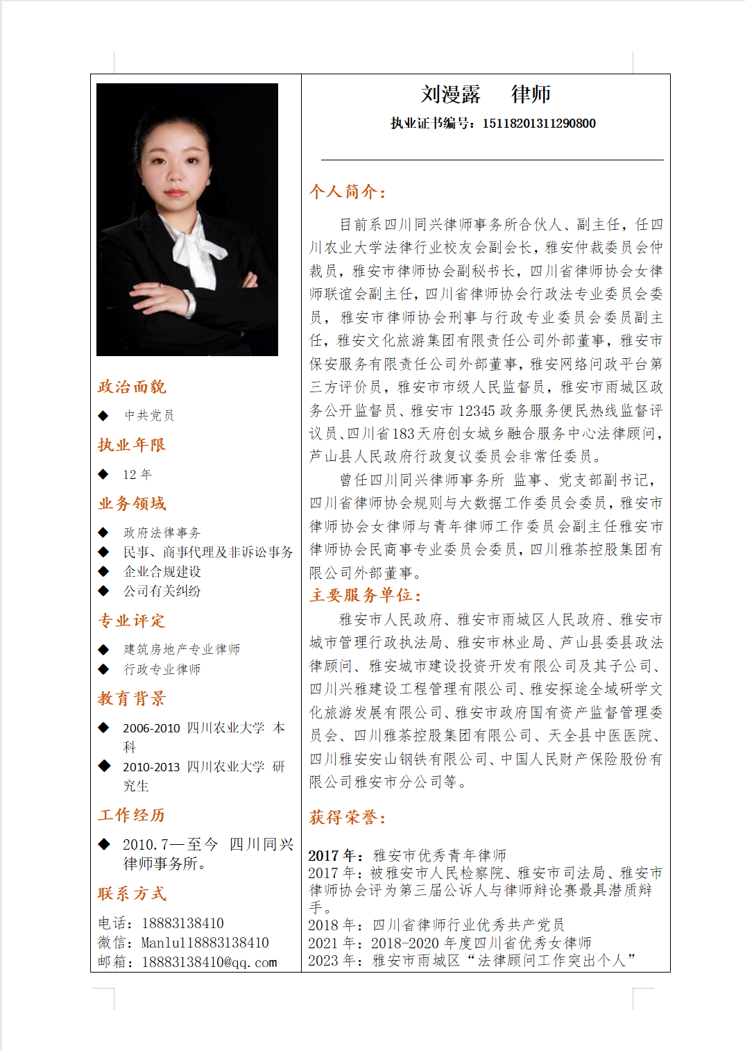 二、主讲嘉宾:雅安同兴律师事务所 刘漫露律师