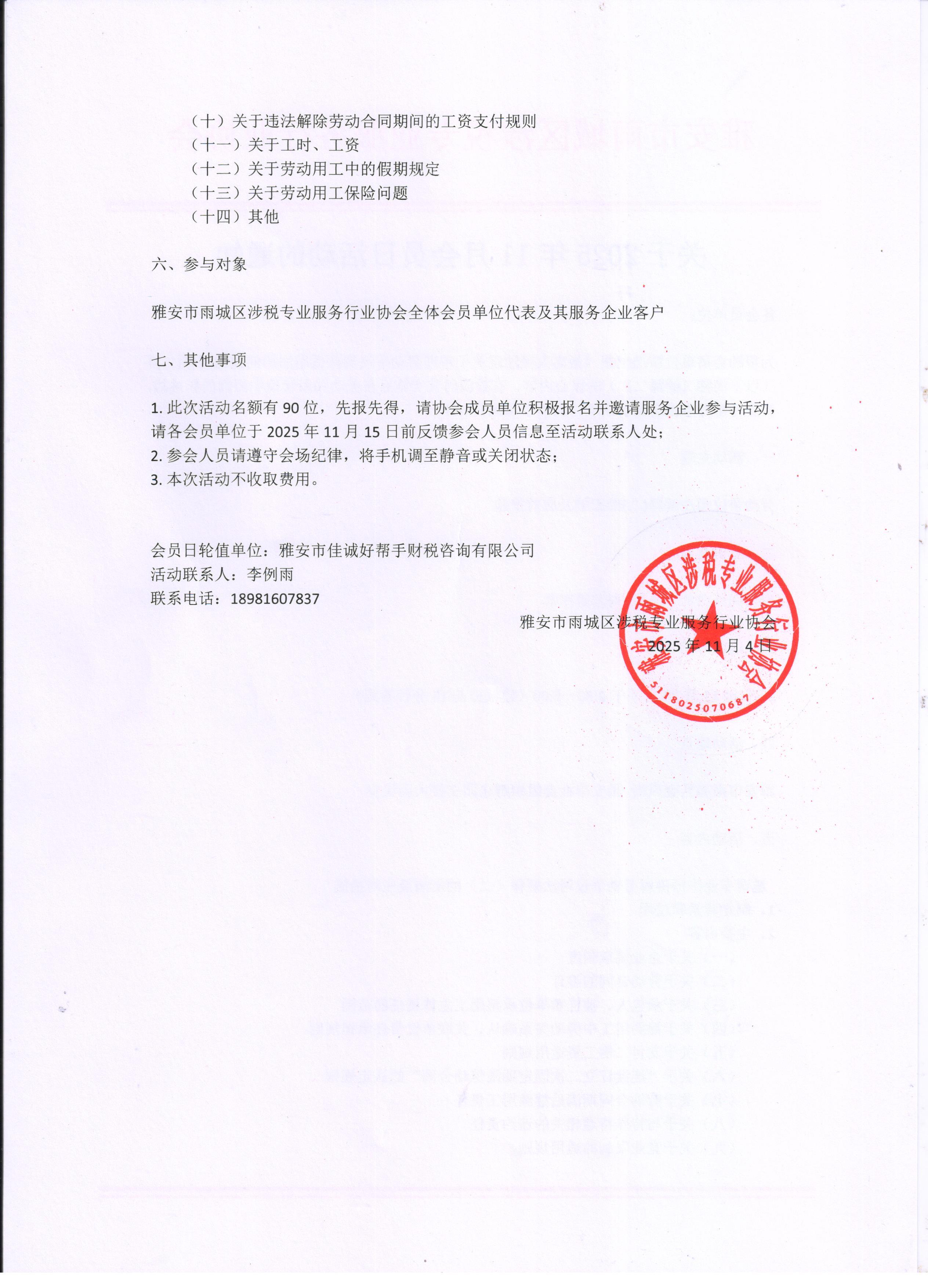 雅安市雨城区涉税专业服务行业协会会员日活动通告